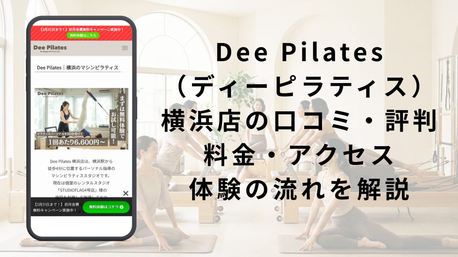 本記事では、「Dee Pilates 横浜店」の基本情報から、安さの秘密、リアルな口コミの傾向、他社スタジオとの比較までを詳しくまとめました。あなたにとって最適なスタジオかどうか、ぜひチェックしてみてください。