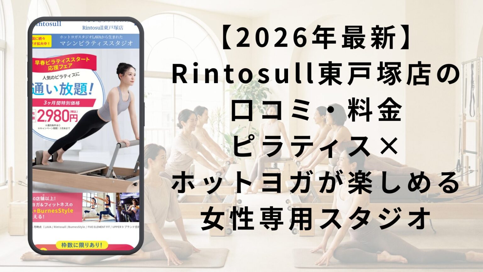 Rintosull(リントスル)東戸塚店は、東戸塚駅東口から徒歩3分の好立地にある女性専用のマシンピラティススタジオです。